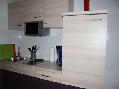 Vollständig möbliert, Laminatboden und Fliessen, Schrank, Bett, Schreibtisch, Esstisch, Fernseher, Küchenzeile mit Kühlschrank. Vollständig inventarisiert: Kaffeemaschine, Wasserkocher, Besteck, Töpfe, Pfannen, Gläser, Kochgeschirr. |