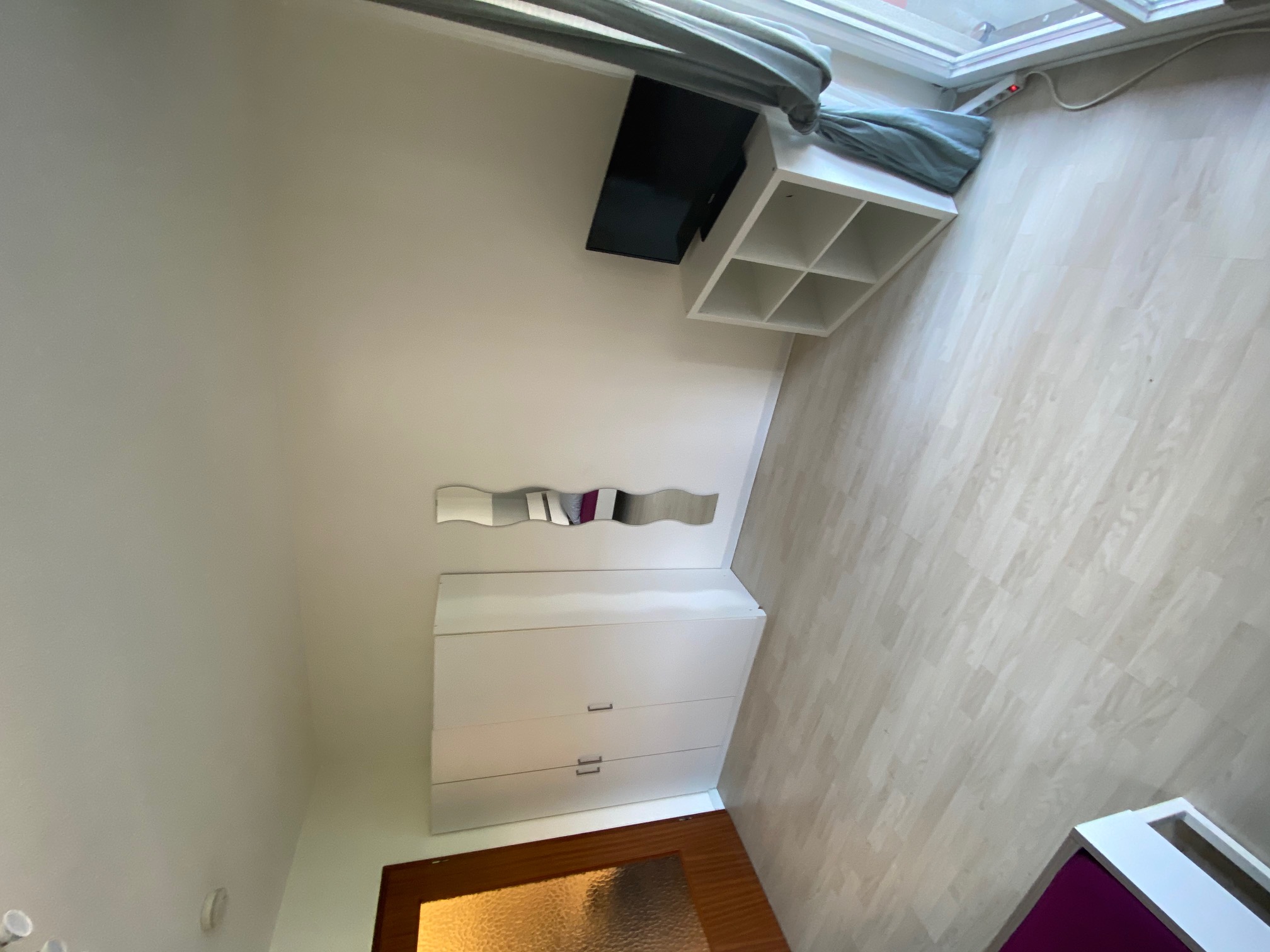 Vollständig möbliert, Laminatboden und Fliesen, Schrank, Bett, Schreibtisch, Esstisch, LCD-TV, Küchenzeile mit Kühlschrank. Vollständig inventarisiert: Kaffeemaschine, Wasserkocher, Besteck, Töpfe, Pfannen, Gläser, Kochgeschirr. |