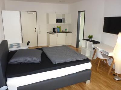 1 Zimmer Suite mit ca. 30qm Wohnfläche für 2 Personen. Ideal für kurz- aber auch für langfristige Aufenthalte in Karlsruhe. |