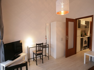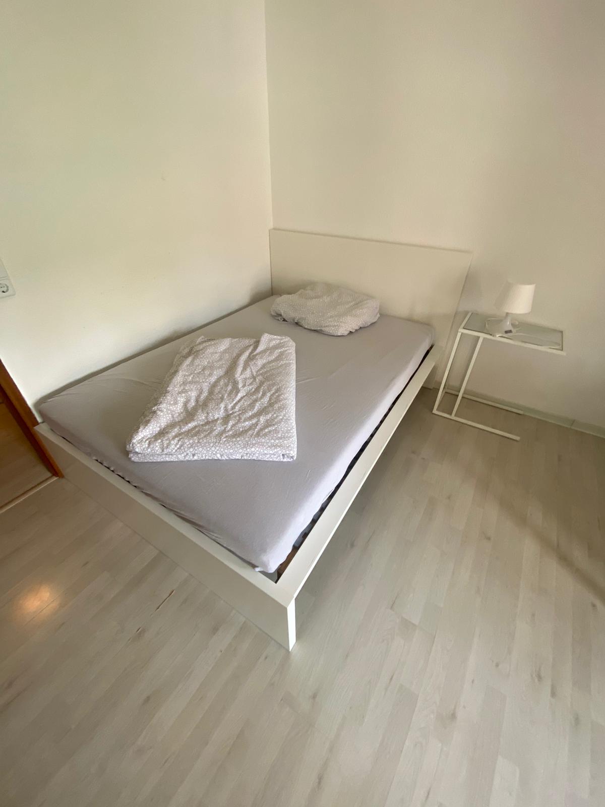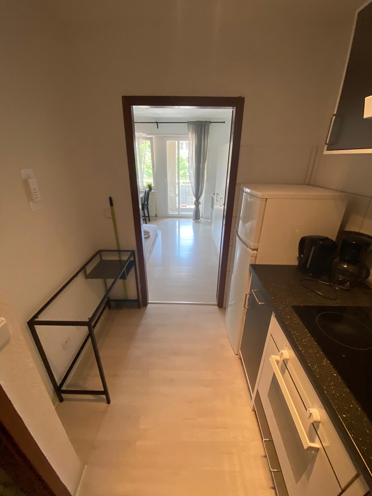 Vollständig möbliert, Laminatboden und Fliessen, Schrank, Bett, Schreibtisch, Esstisch, Fernseher, Einbauküche mit Herd und Kühl-/Gefrierschrank. Vollständig inventarisiert: Kaffeemaschine, Wasserkocher, Besteck, Töpfe, Pfannen, Gläser, Kochgeschirr |
