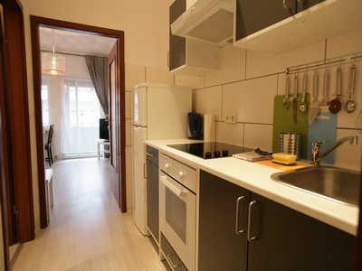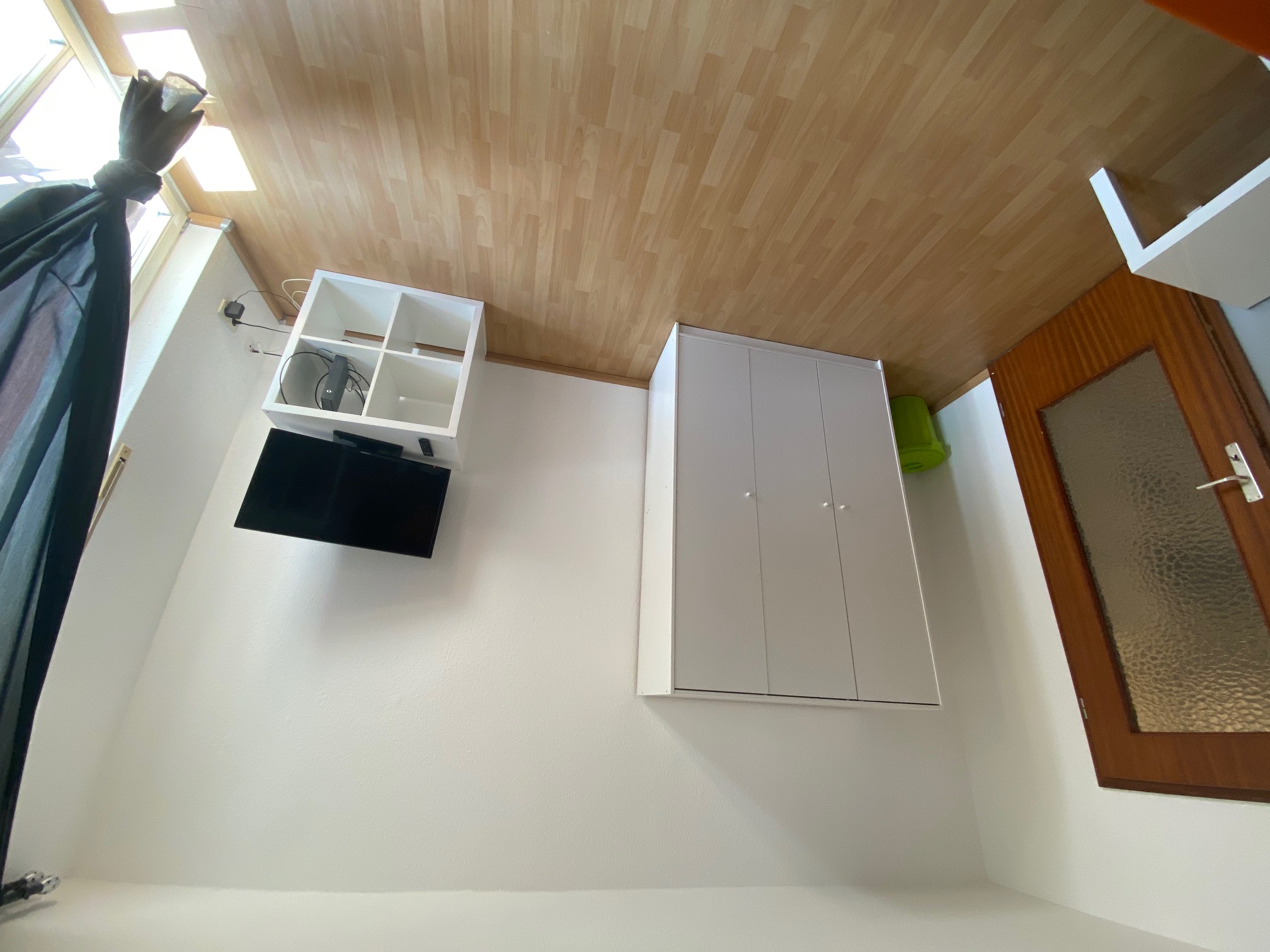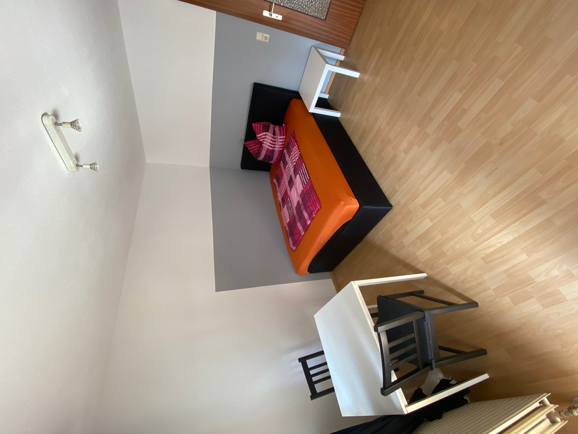 Vollständig möbliert, Laminatboden und Fliessen, Schrank, Bett, Schreibtisch, Esstisch, Fernseher, Einbauküche mit Herd und Kühl-/Gefrierschrank. Vollständig inventarisiert: Kaffeemaschine, Wasserkocher, Besteck, Töpfe, Pfannen, Gläser, Kochgeschirr |