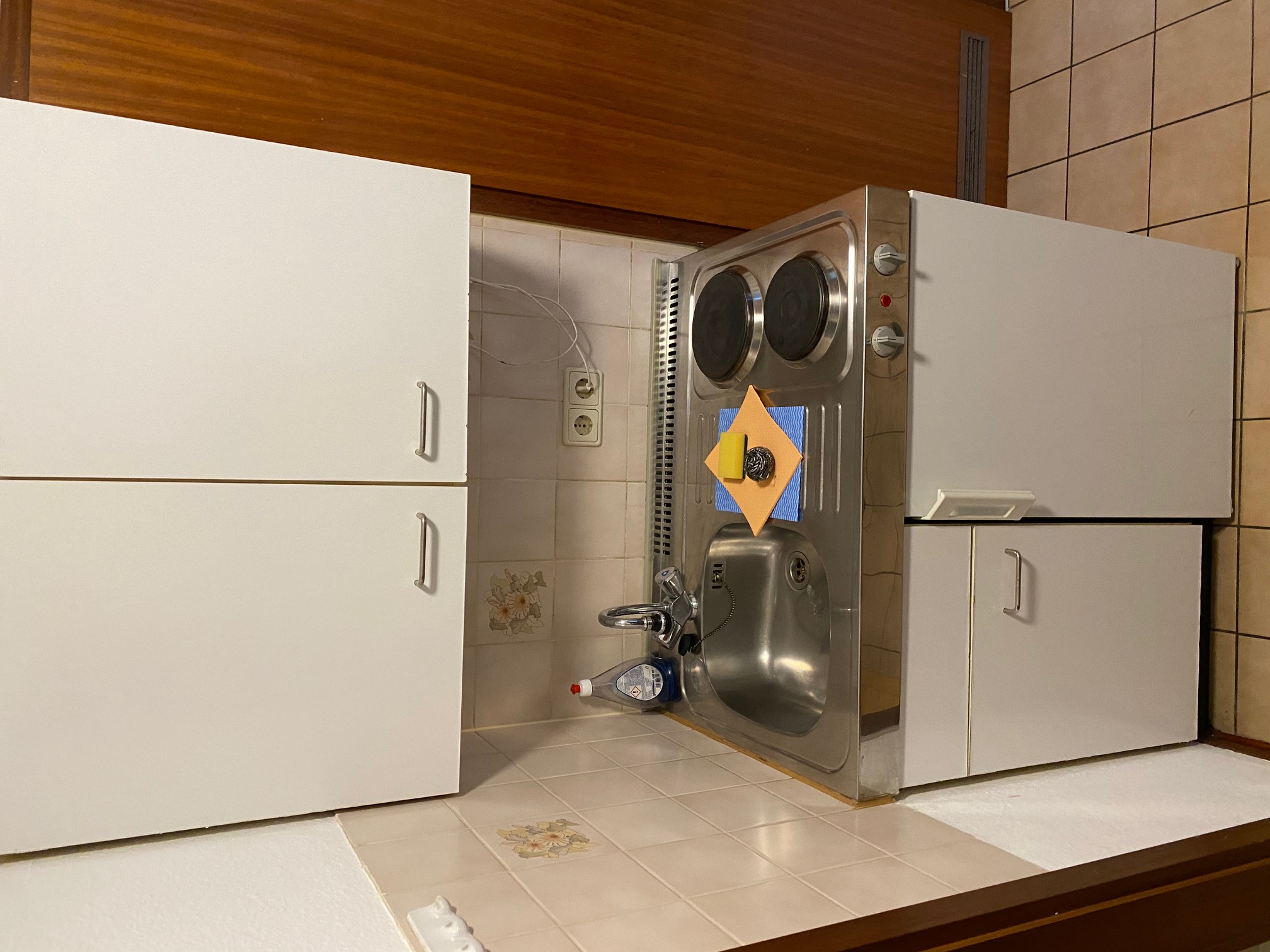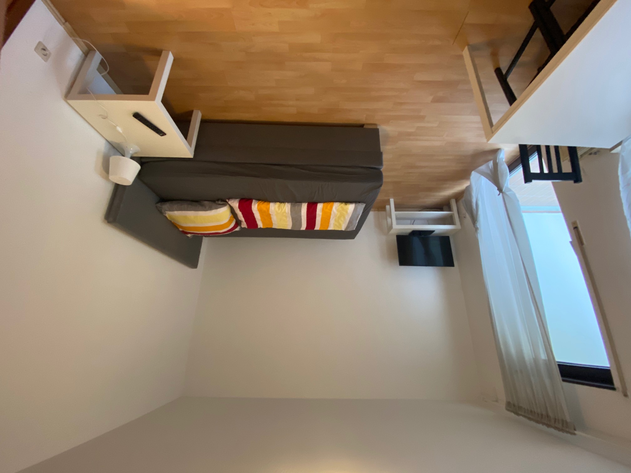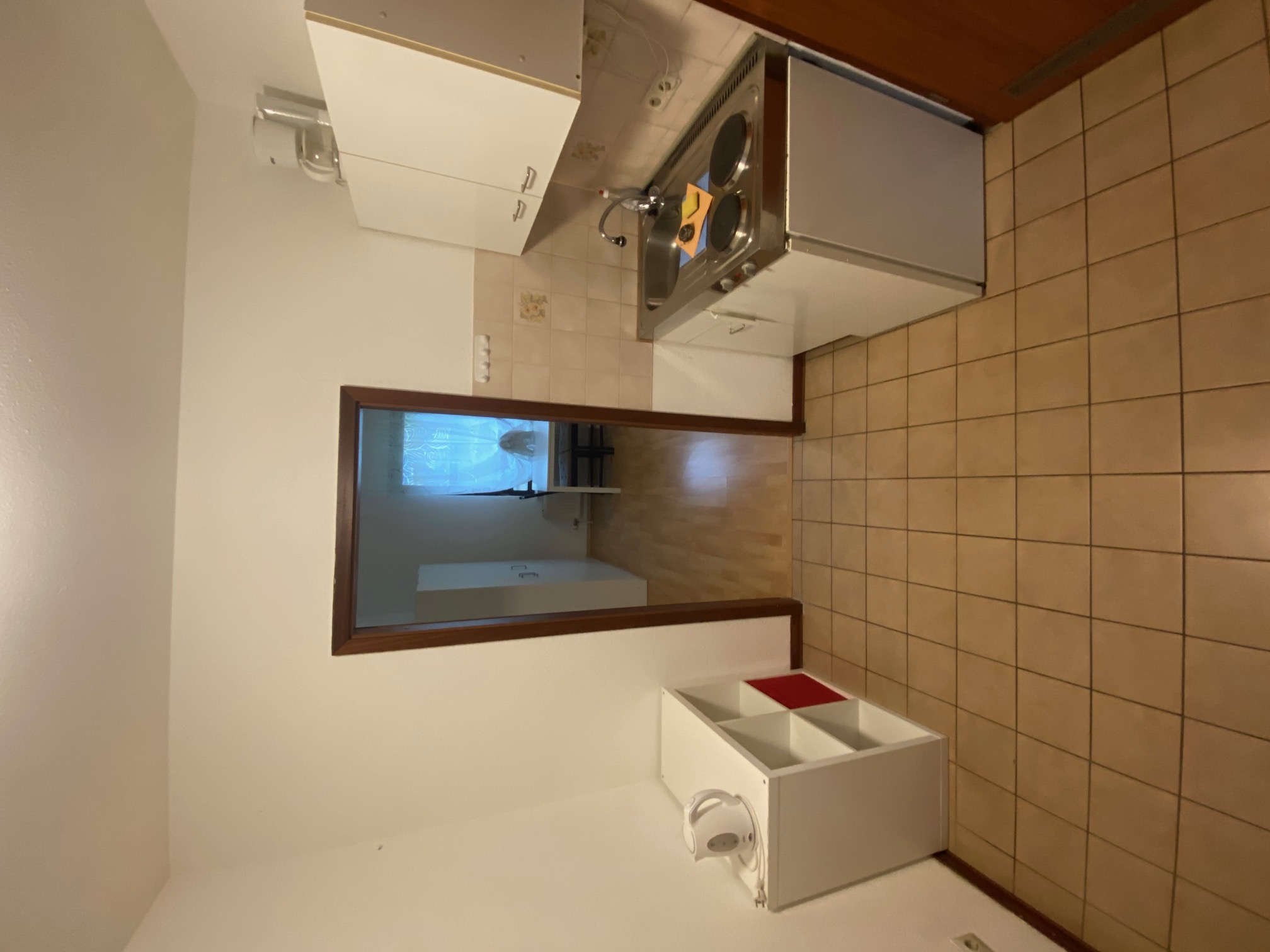 Vollständig möbliert, Laminatboden und Fliesen, Schrank, Bett (140x200), Schreibtisch/ Esstisch, LCD-TV, Pantryküche mit Kühlschrank. Vollständig inventarisiert: Kaffeemaschine, Wasserkocher, Besteck, Töpfe, Pfannen, Gläser, Kochgeschirr.