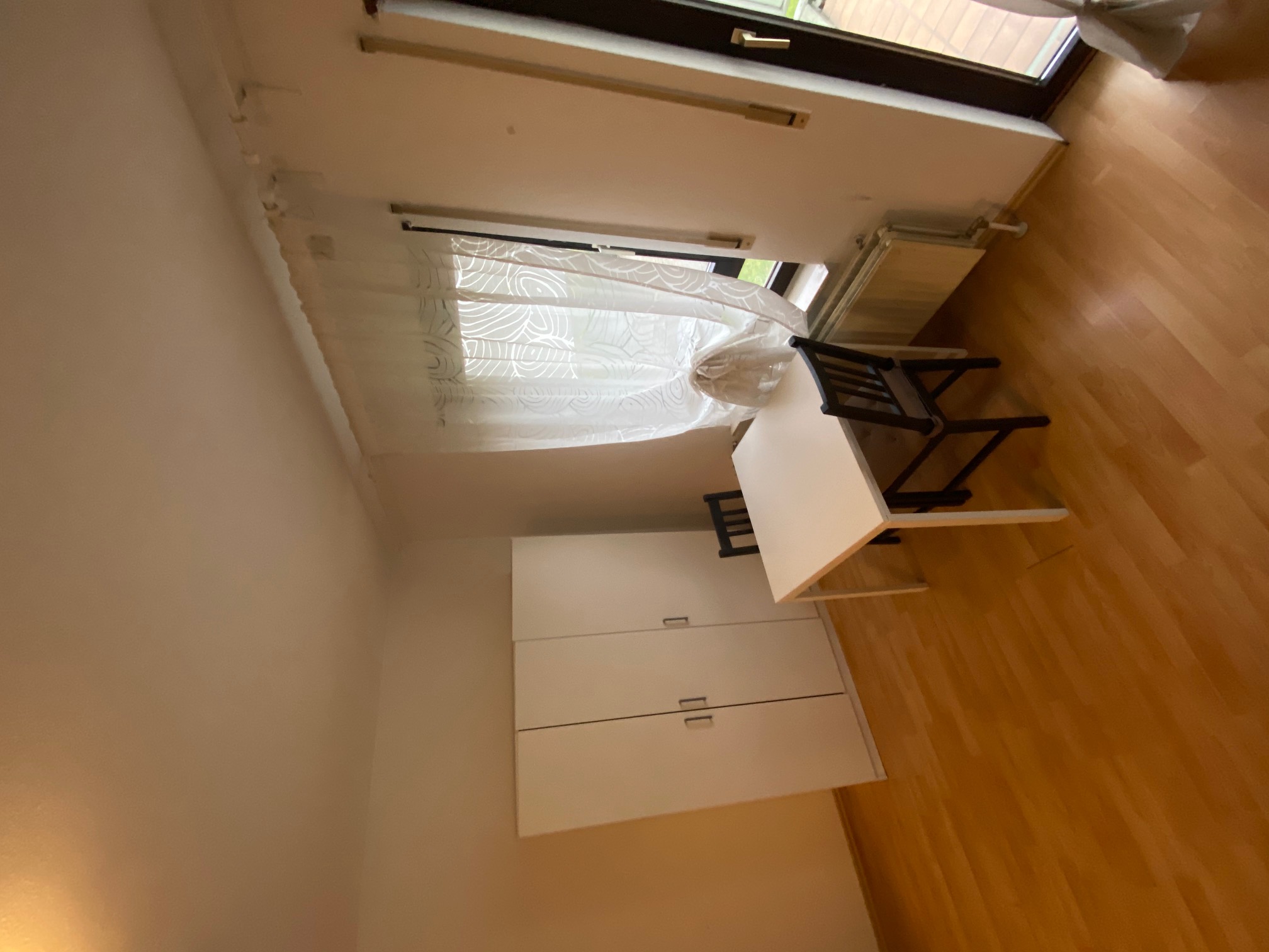 Vollständig möbliert, Laminatboden und Fliessen, Schrank, Bett, Schreibtisch, Esstisch, Fernseher, Küchenzeile mit Kühlschrank. Vollständig inventarisiert: Kaffeemaschine, Wasserkocher, Besteck, Töpfe, Pfannen, Gläser, Kochgeschirr,
