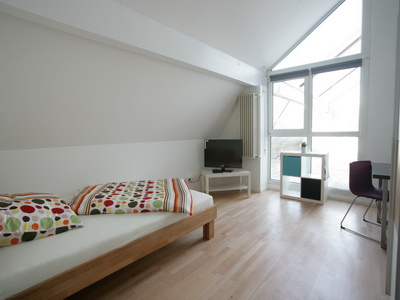 Moderne, gehobene Ausstattung. Vollständig möbliert. Hochwertiges Fertigparkett im Wohnbereich. Bad und Dusche sind hell und modern gefliest. Die Apartments verfügen über: Kleiderschrank, Spiegel, Bett, Schreib-/Esstisch, Stühle, LCD-TV, WLAN und eine kleine, moderne Single-Küche mit Mikrowelle. Kaffemaschine, Wasserkocher, Besteck, Töpfe, Pfannen,Gläser und Kochgeschirr sind bei uns selbstverständlich. Dach-Lounge für alle Gäste. |